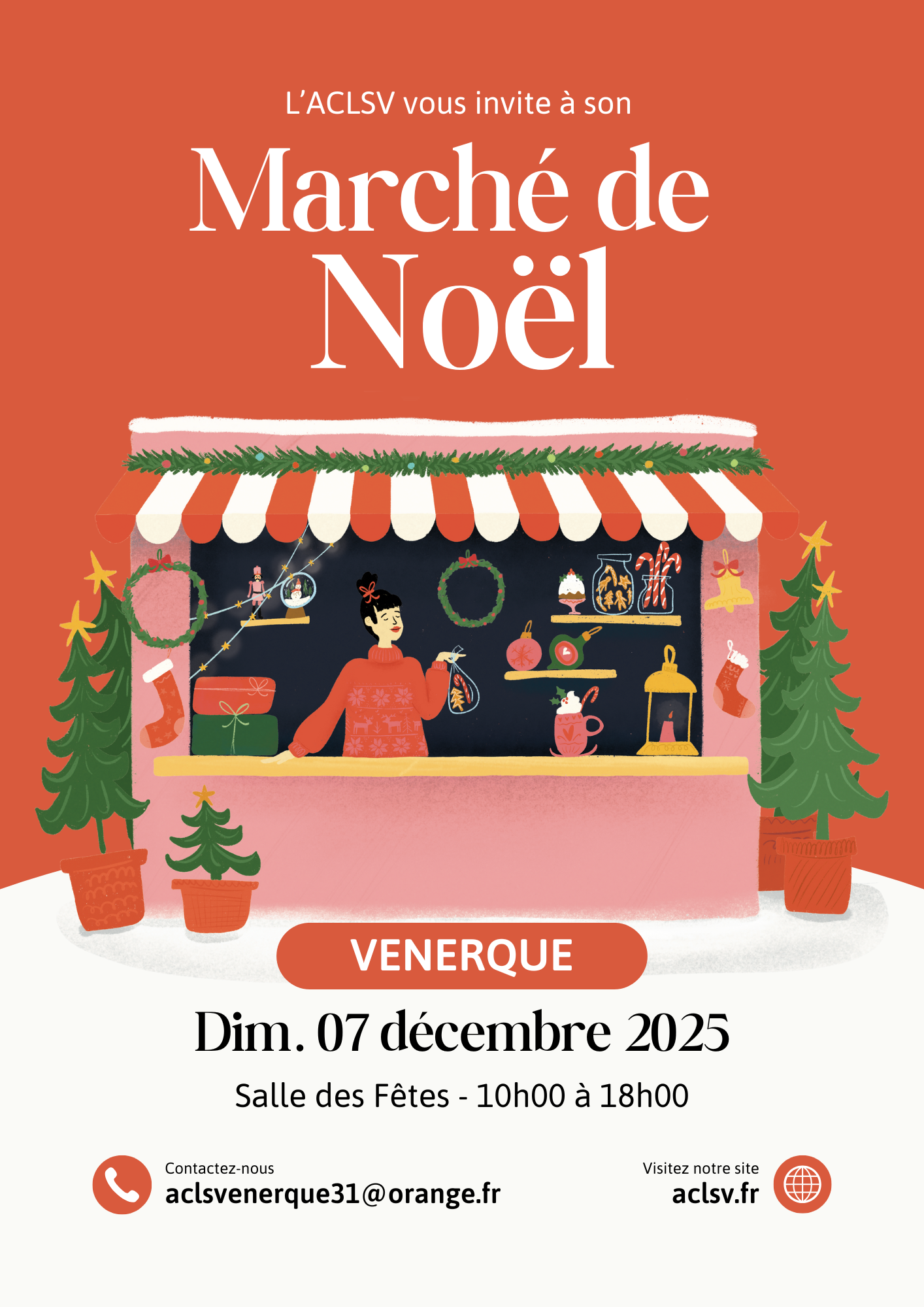 L’ACLSV organise comme tous les ans le Marché de Noël dans la salle des fêtes de Venerque le 07 Décembre de 10h00 à 17h00. Des artisans vous permettront de pouvoir trouv